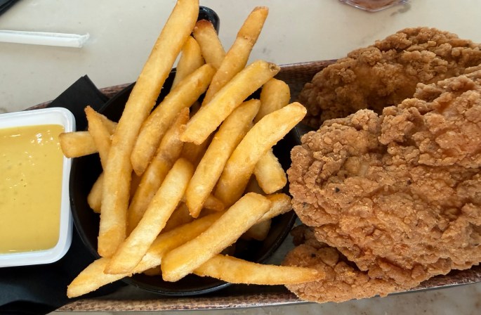 Let me see, what did Eric order………….fried chicken fingers and fries. What!?!!!!! He said he ordered it for me. Really, does anyone believe that?
