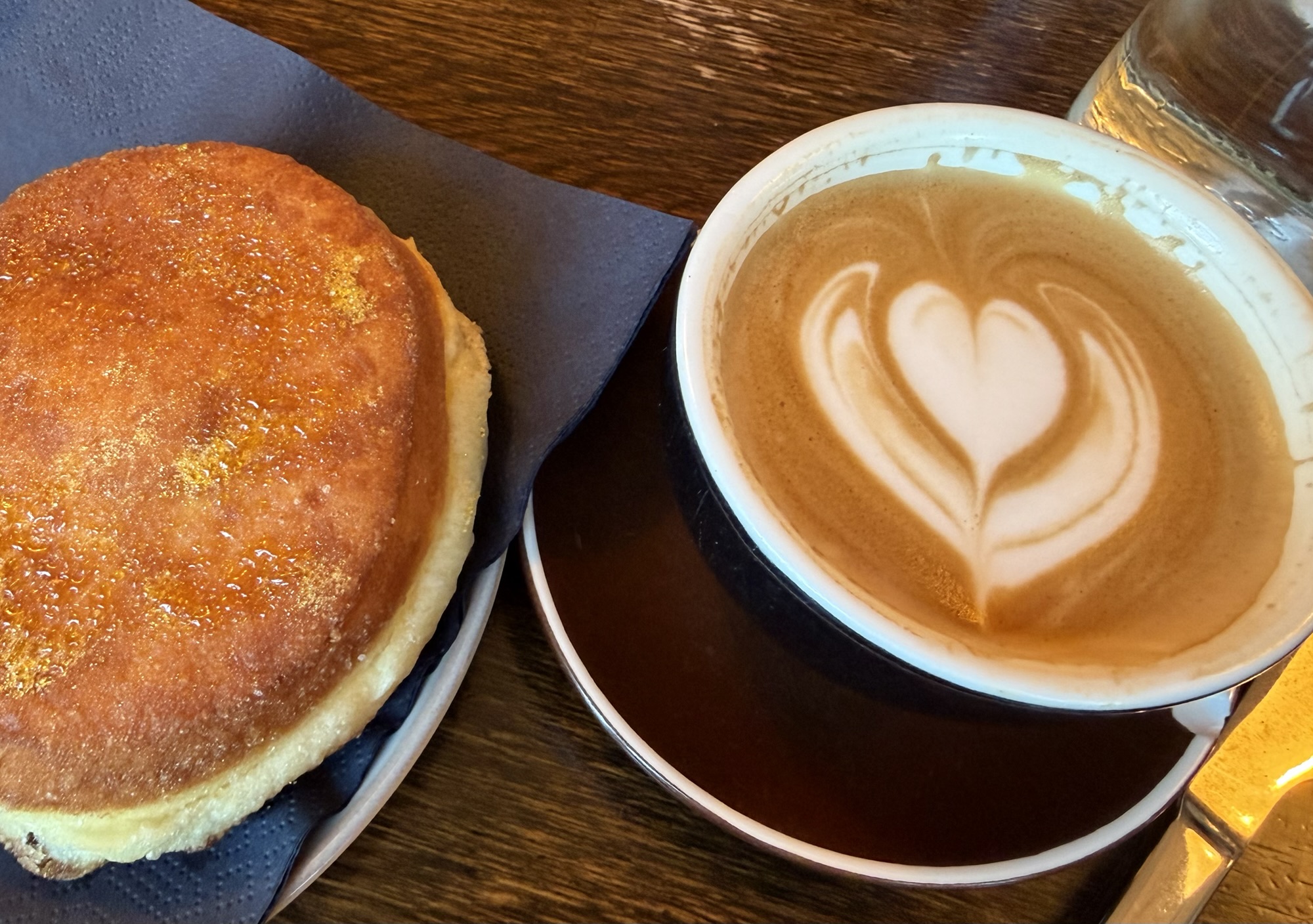 Vanilla donut and coffee for me, oatmeal porridge for Eric.