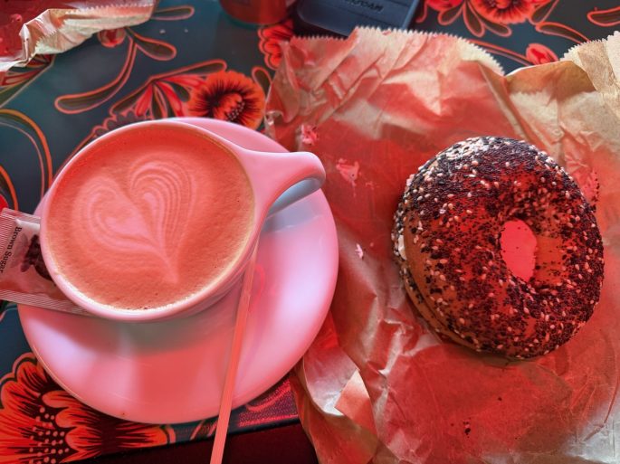We read about a new bagel place that was becoming very popular. Sorry, the lighting was odd and the photos turned out a wonky color. The everything bagel was tasty and easily big enough to share.