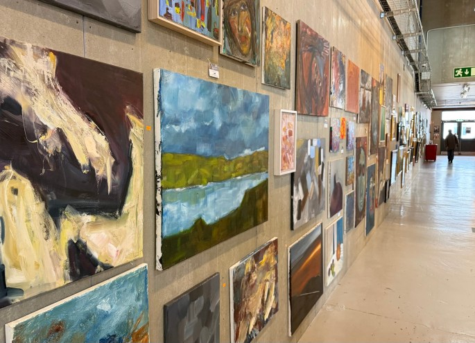 A variety of treasures could be found like this wall of local paintings available in all price ranges.