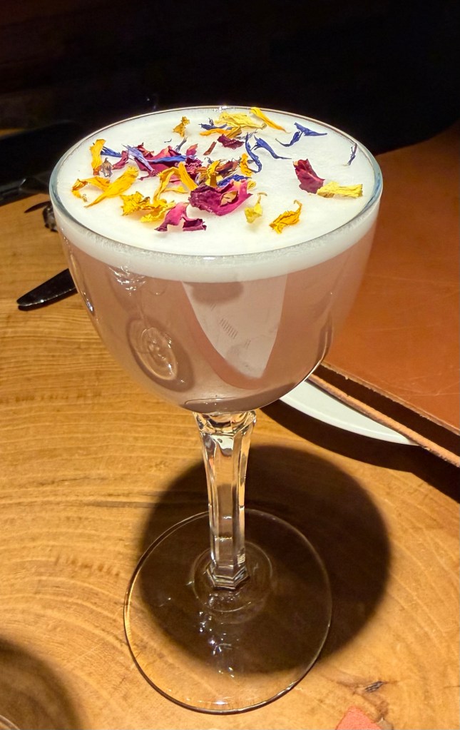 Eric started with a cocktail, made just for him – bartender’s choice. Our waitress asked what spirit he wanted in his drink, then a preference for sweet/bitter or any flavor he wanted to add. The result is pictured below.