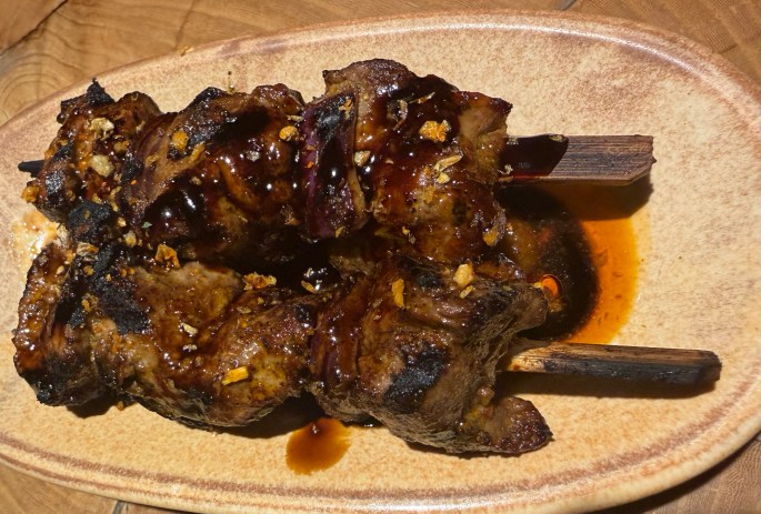 We realized we had not ordered any lamb on this trip and got the lamb skewers as a starter – delicious and cooked perfectly.