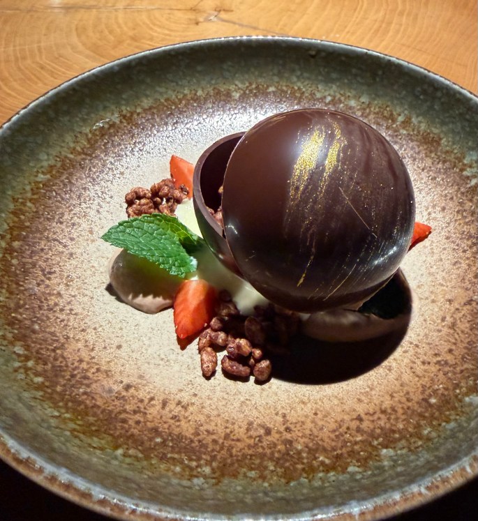 My choice was chocolate, a chocolate sphere with mascarpone mousse, warm caramel and coffee ice cream.