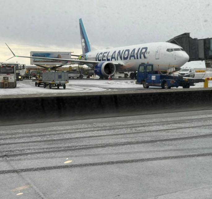 The only thing left to do was get to the airport. We had both been hoping for some snow during this break from Florida. All the locals said they were waiting for snow also. Didn’t happen………….until we arrived the airport and was past security. We saw this as we were waiting to board our flight. Really? Really.
