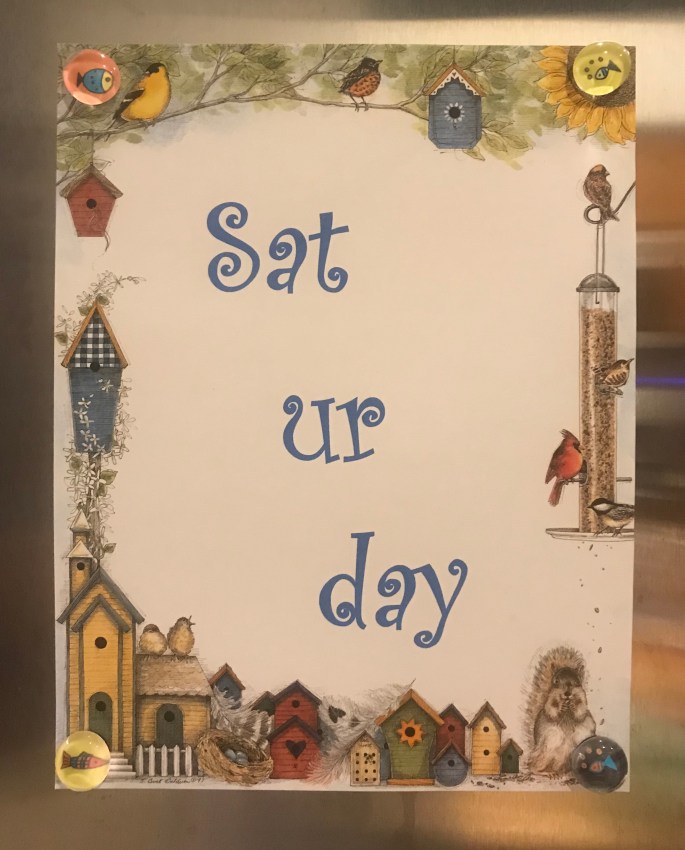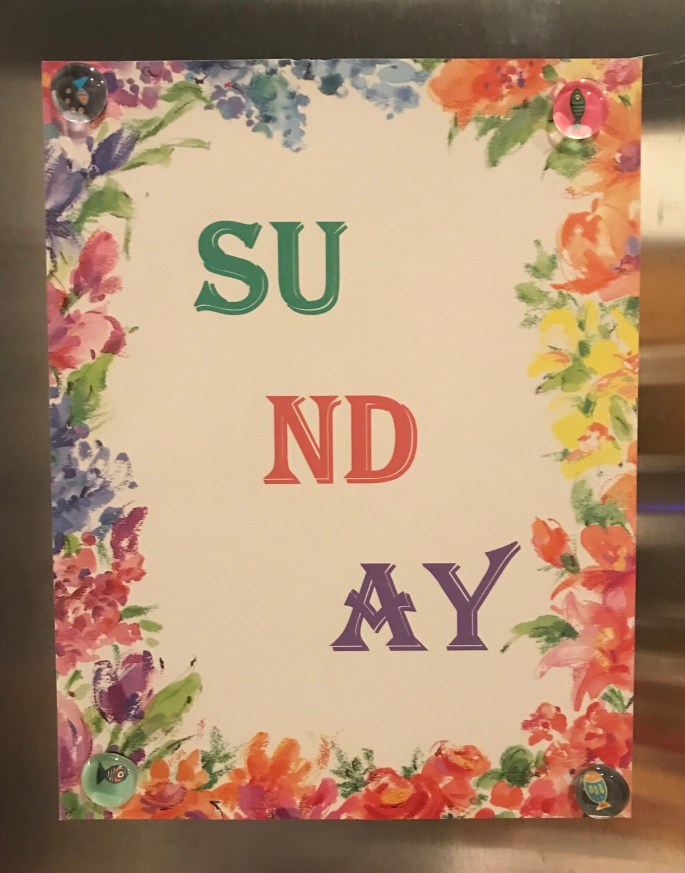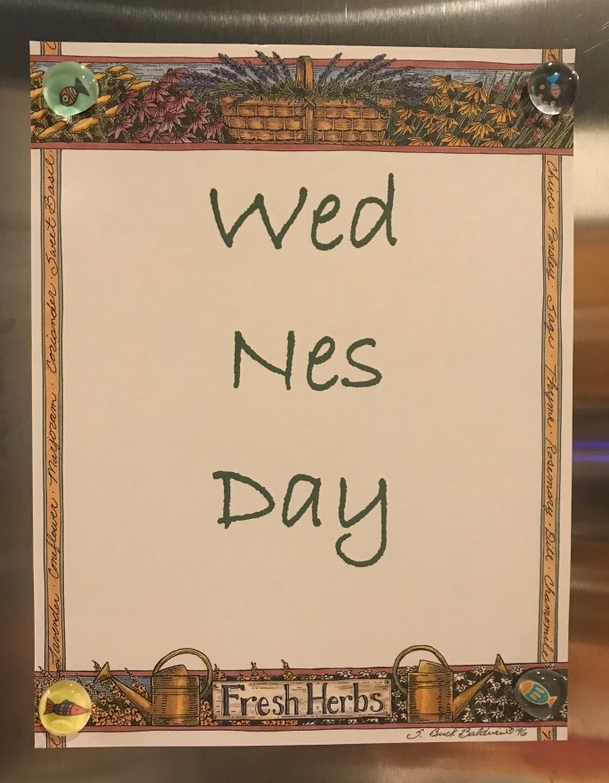 Can’t believe it. We’ve gone through 8 weeks of being home. One of our jokes is ‘What day is it?’. I solved that problem – as long as I updated the signs placed on the fridge. 🙂