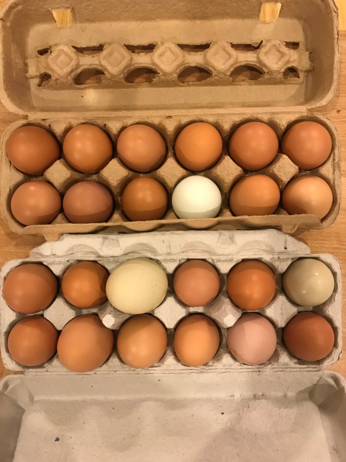 I have a shot of his ingredients but am including the basis for his awesome-tasting meals, local eggs and the French locally-made bread.