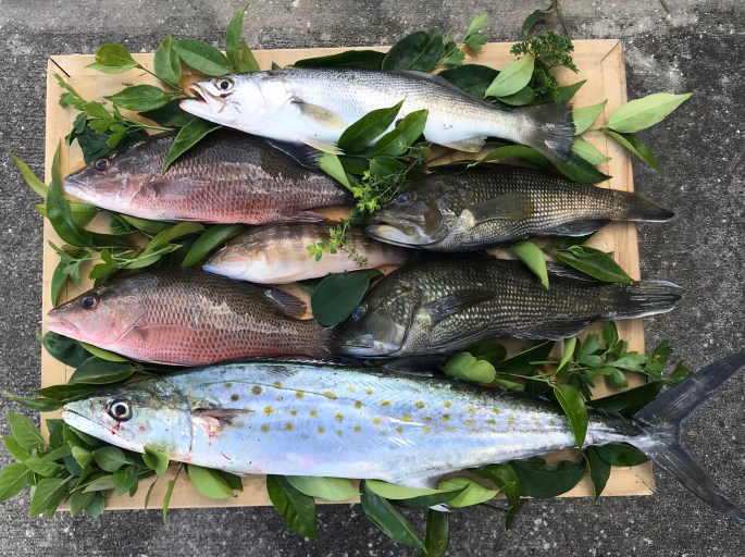 The short time on the water was fruitful. Here’s our catch for the day. Six fish – seatrout, macks, black sea bass and sea perch.