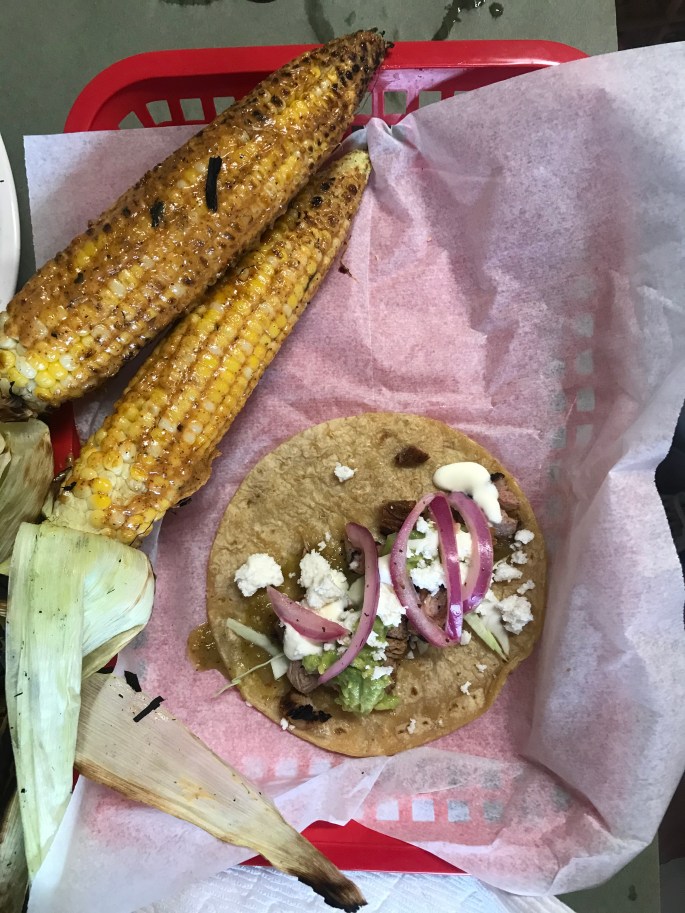 Eric’s cooking break lasted one day – sorry hon. Some of his meals have included more street corn and carnitas tacos.