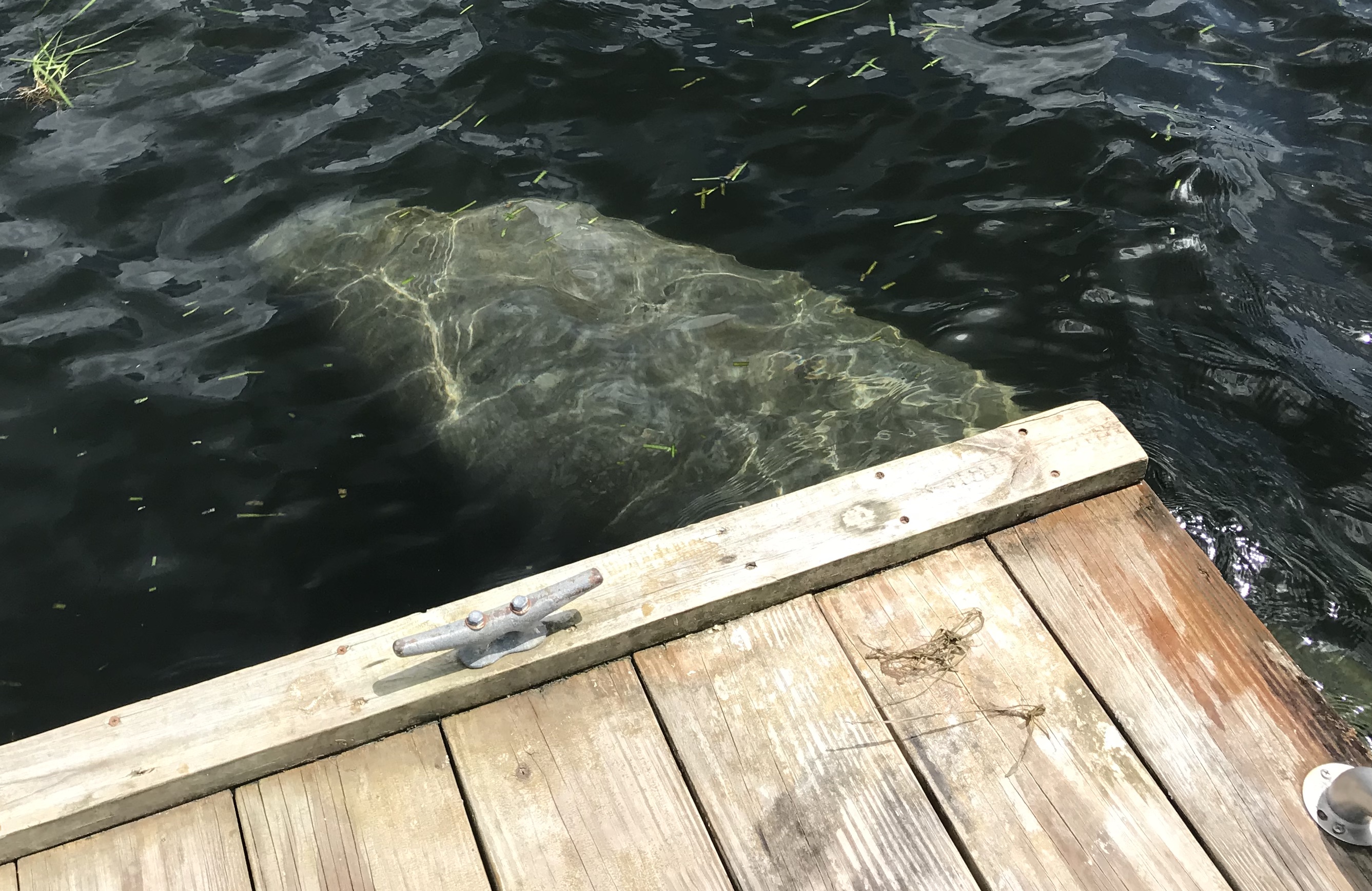 The high water also made it easier to spot manatees. Lots of people pay money for an excursion in the springs for this to happen. Here I could look over the edge of the floating dock.