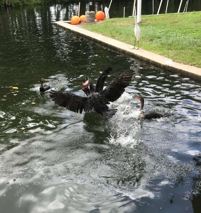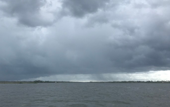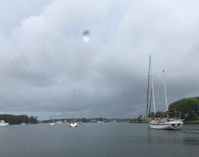 By the time we got everything packed in the boat, clouds had moved in. Notice that ‘spot’ in my photo below? Rain. it was barely sprinkling when we left our hotel, but that changed.