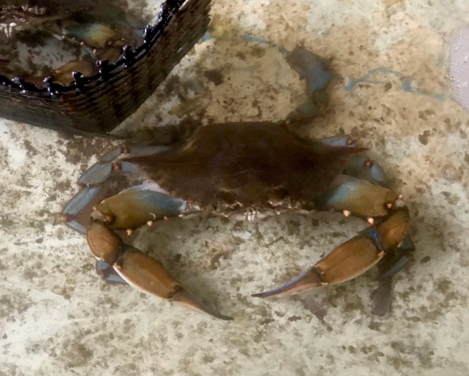 Notice the very bottom section of the sign? ‘Blue Crab Farm’ At the back of their place, you can see some of their holding tanks. This guy was not shy. Guy? Girl? I’m not going to pick the crab up to find out!