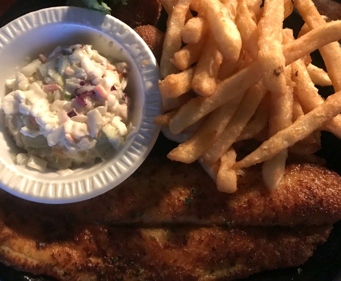 My broiled flounder filets and Eric’s fried fisherman’s platter was filling enough that no supper was needed.
