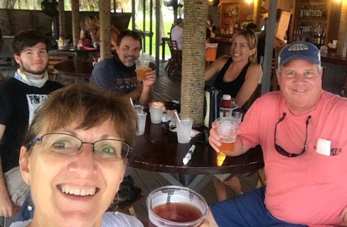 Rich and Connor stopped by our house Friday night and headed over (taking our boat) Saturday morning. Adrienne drove over mid-afternoon Saturday to join us. Eric and I arrived in time to find our room, freshen up and gather up the gang before heading over to Peck’s Old Port Cove Seafood Restaurant for our 7pm reservation.