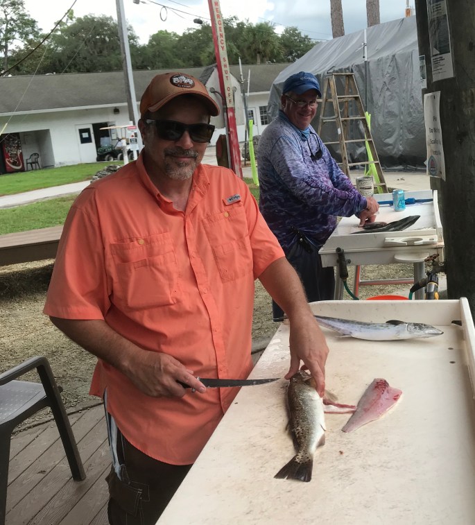 The guys enjoyed the fish-cleaning table at this place. It is a step (or two) up from a lot of places. Dual cutting surfaces, water hoses nearby and another really nice feature…………….it was covered giving ample shade.
