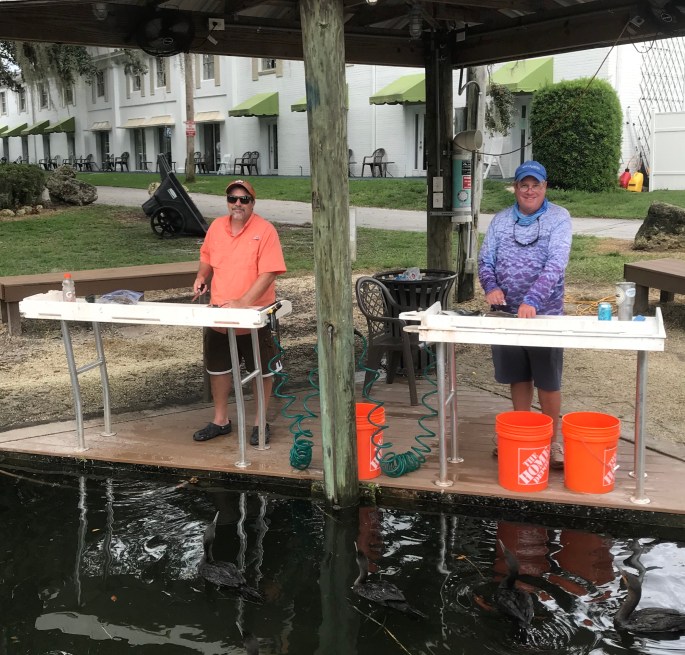 They don’t have kitchenettes so every meal has to be eaten out and it doesn’t give us the opportunity to cook our day’s catch. Regardless, we like the rooms and the ability to secure our boat right outside of the room along the seawall is a bonus.