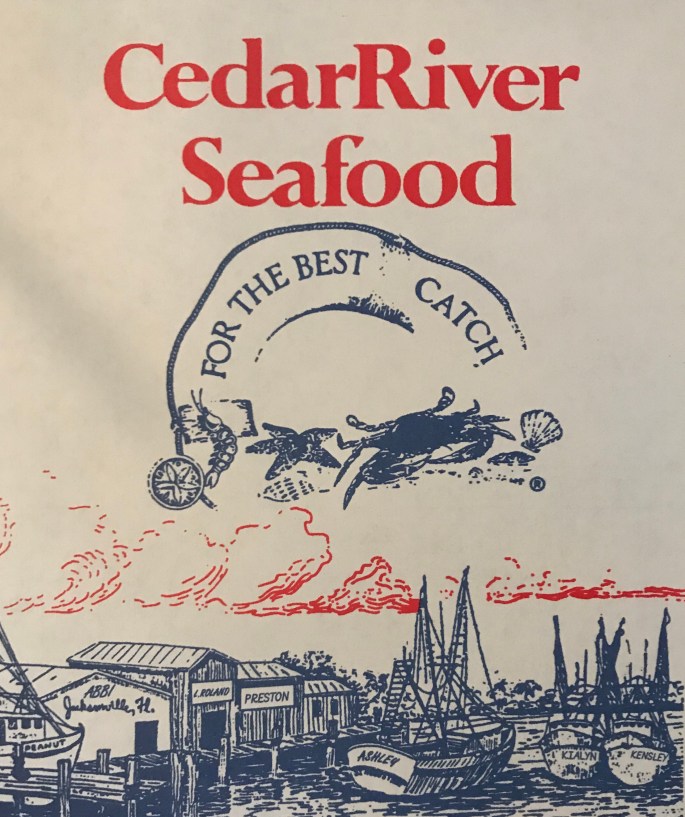 Since we were pushed off the water and leaving earlier than expected, we needed lunch. We found a seafood spot on the way home – Cedar River Seafood.