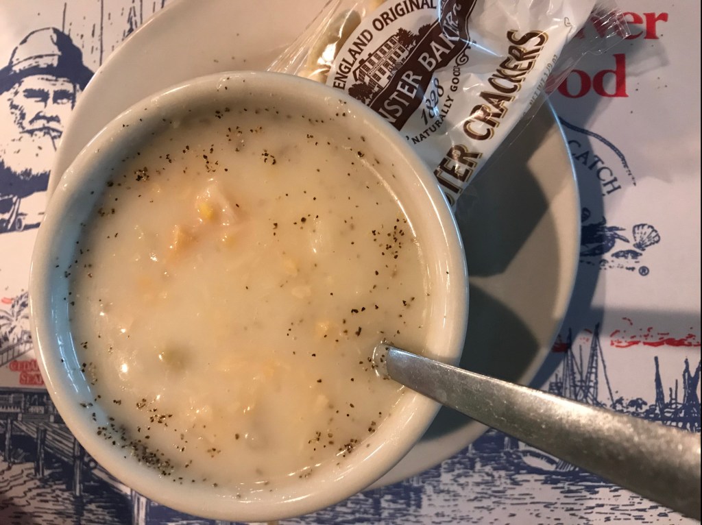Although everyone – but me – started with clam chowder, I (somewhat patiently) waited for the fish net onions appetizer – super yummy and crunchy!