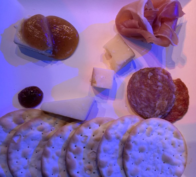 Remember, hot, muggy, hot, muggy……oops forgot the sunny. We found a few selections that gained our interest. I got the charcuterie plate with Adrianne bringing back a pierogi dish and a seafood shepherd’s pie. There was plenty to share.