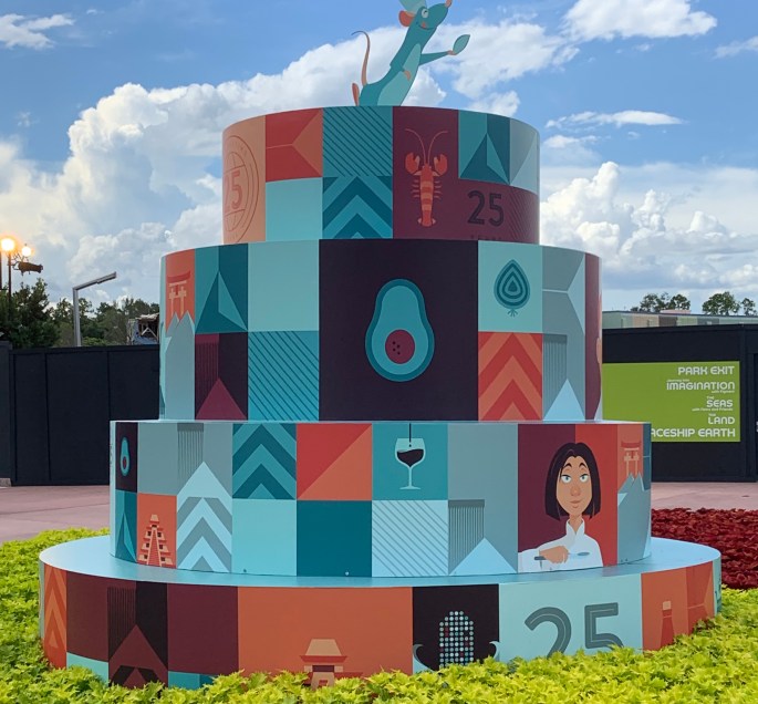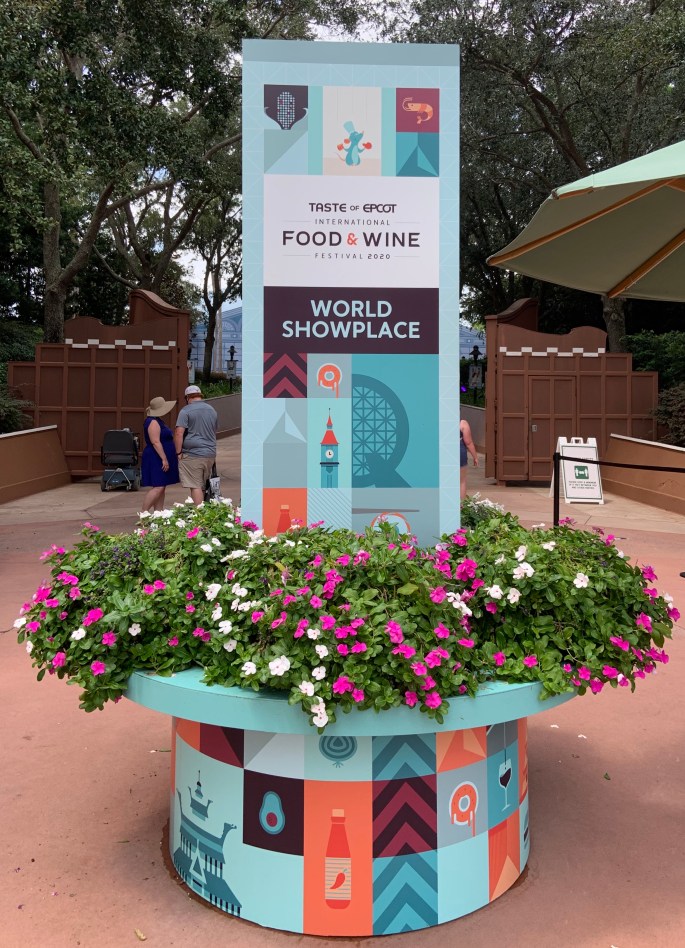 Epcot’s big draw is our festivals – I don’t think that’s a secret (and we have some r.e.a.l.l.y cool ones)! Covid-19 has turned that up-side down. We’re kind of doing a ‘festival blend’ at this moment in time. We have Flower & Garden merchandise, but the theme is ‘Taste of Epcot International Food & Wine Festival 2020′. Notice the ’25’ near the bottom of the right photo? This year was the 25th anniversary.