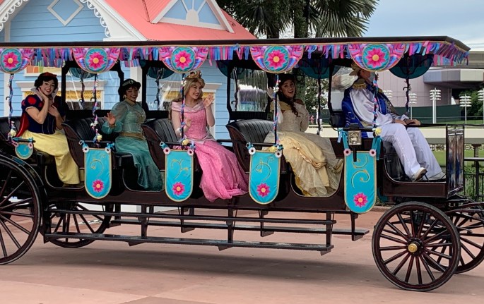 There’s another thing different going on this summer – Character Calvalades. Mickey and Minnie are escorted around the lake with Goofy leading the way.