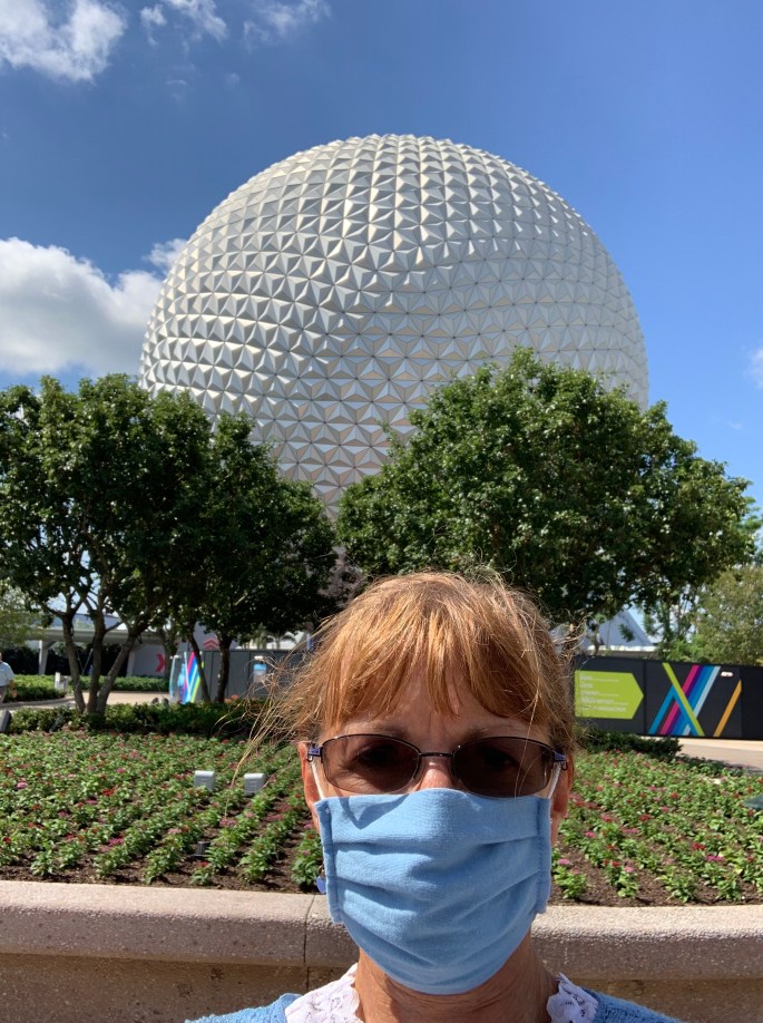This first shot is literally, the first day that Epcot opened to guests on July 15, 2020 after a +17 week closure. Kind of odd wearing a face mask (and photographing it) but it is my current world.