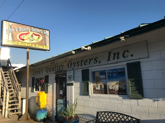 Our late lunch turned into an early supper at Lynn’s Quality Oysters, Inc. Yes, it’s a dive. Initially an outlet for Seafood, they have a small bar (fully occupied when we arrived), small indoor seating area with 5 tables and a really cool outside eating (way too cold today) space with great views of the waterfront.