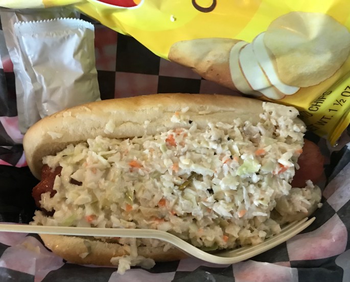 Another dozen of raw oysters, bowls of seafood gumbo, 1/2 dozen of broiled oysters and a slaw dog rounded out our meal this day.