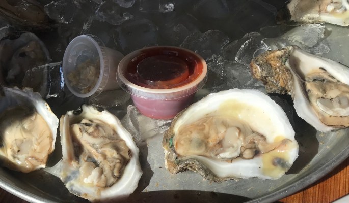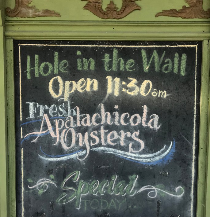 Two dozen oysters were ordered. These were from Louisiana, not Apalachicola as their outside sign states.