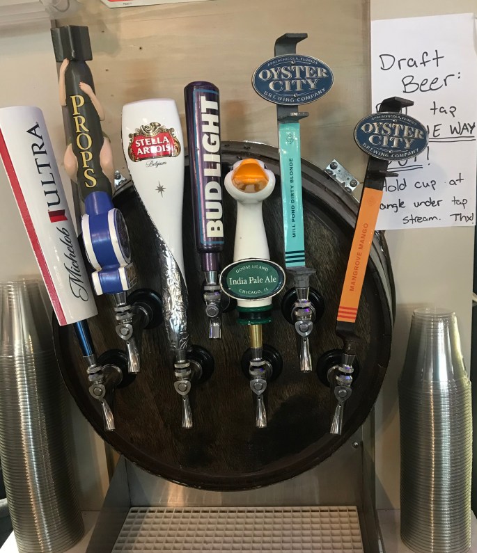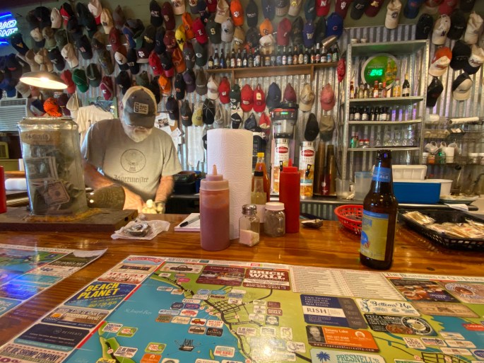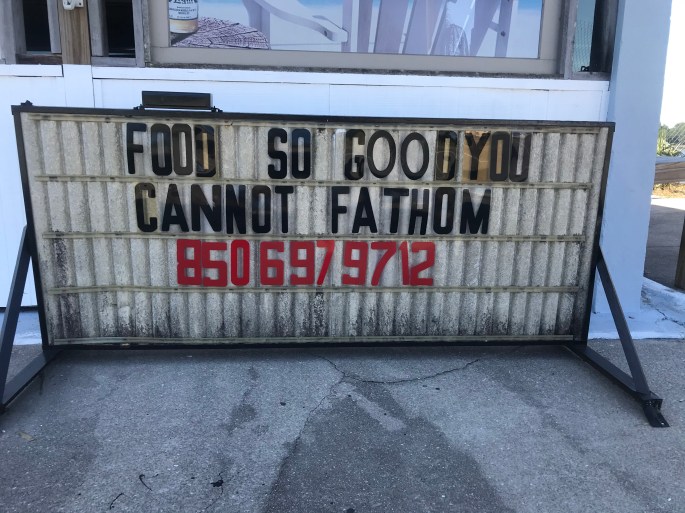 I had driven past this place a number of years, never stopping. Eric and friends had stopped when it was much more of a dive and biker bar. Hurricane Michael 2019 saw 8′ water surge and the staff told us all that was left was four walls. Their rebuild was fantastic.