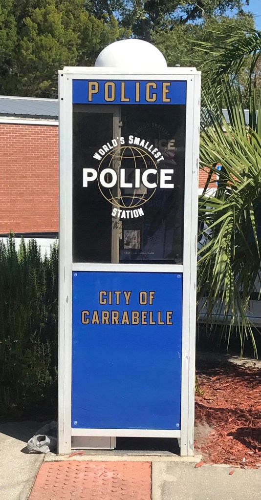 Bright and early one morning we drove to Carrabelle for our oysters. Home of the world’s smallest police station. I had heard about this for a number of years and passed it multiple times. Carrabelle Chamber of Commerce has a nice flyer detailing its history. Google it – you’ll enjoy the tale. 🙂