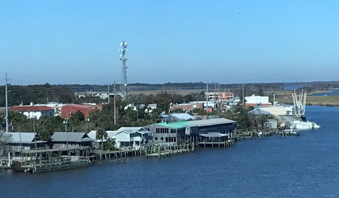 A shrimp fleet is nearby, but a few shrimp trawlers are always parked along the riverfront.