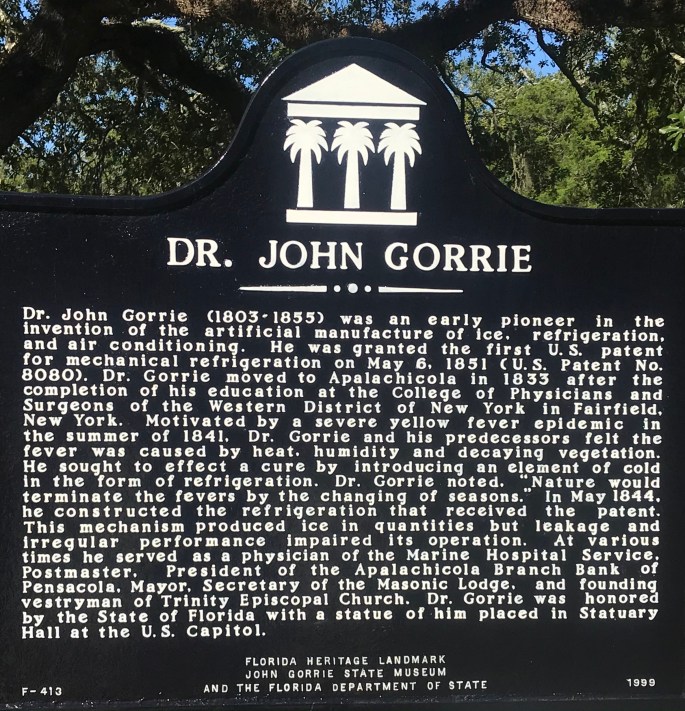 Alas, it is closed due to Covid-19. This was posted on their entry door. Inside you can see a replica of his invention: a machine designed to convert water into ice. Yep, that’s right, the precursor to Air Conditioning! Sorry Adrienne, next trip we will get you inside.