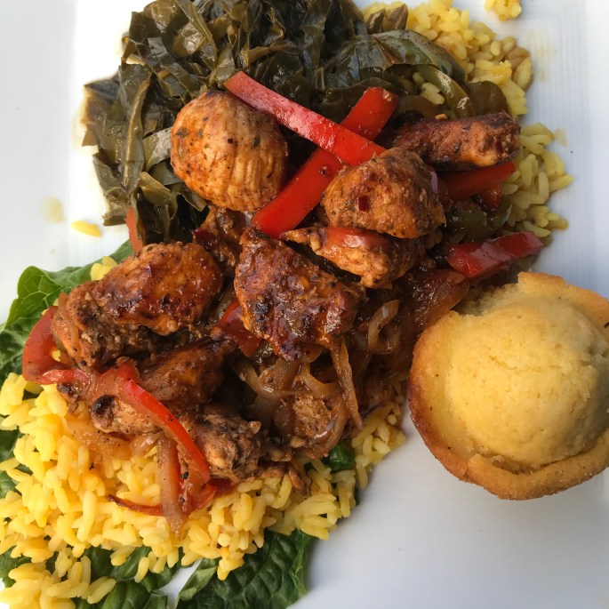 My choice was Jerk Chicken & Rice. The spices were spot-on. The portion was too much food for me and half went home.