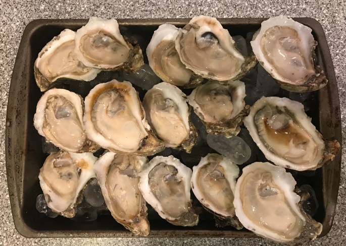First dinner on the island is rarely about seafood, or at least not about seafood we have caught. This time was no different, except for our appetizer. Naturally, oysters start the evening.