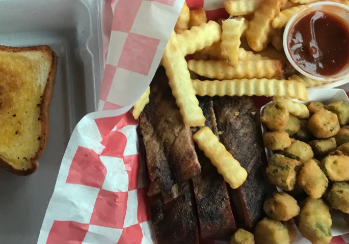We knew from last year’s drive open restaurants were few and far between. Some old favorites had fallen on hard times and were no longer open. Although we had eaten breakfast at home before starting, driving all the way to St. George Island was quite a stretch. Maybe I should clarify…..there were plenty of fast food joints, but we make every effort to eat local. BBQ was Eric’s ‘snack’ of choice – really? BBQ is a snack? He thought a few ribs would carry him over until supper. Me, I just wanted the fries. Dipped in hot BBQ sauce – mighty tasty!