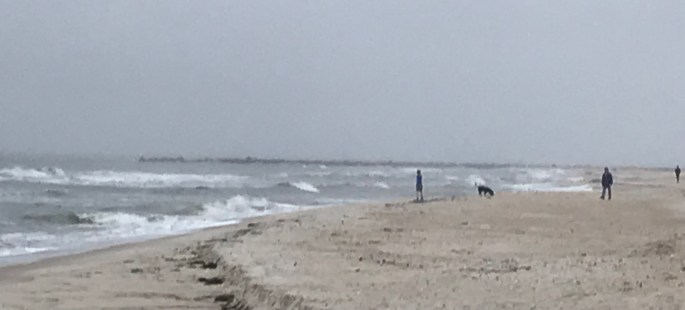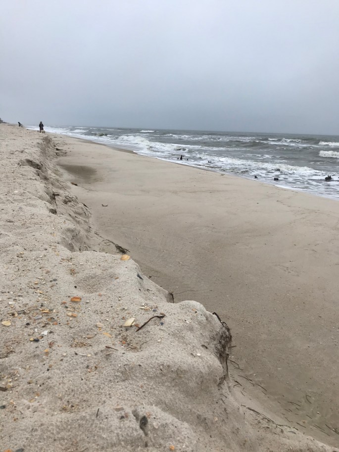 The unsettled weather had the beach churned up quite a bit as seen by the erosion. Besides myself, there are a few hearty souls.