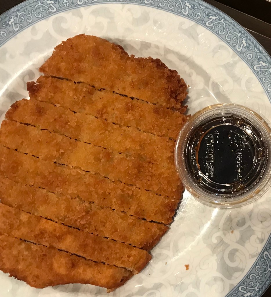 Our final order arrived and it was another reminder of our time in China – fried pork cutlet, exactly like we used to get at Din Tai Fung.