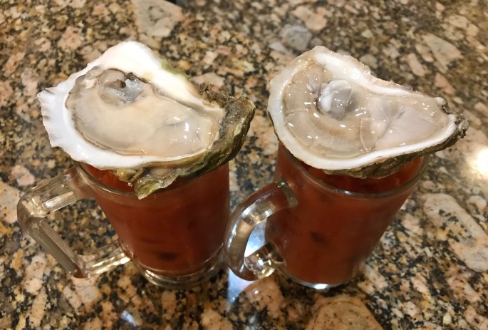Before leaving home, the morning started with a Bloody Mary, topped with an oyster. Notice there’s only two, not three. I did not partake. Adrienne was the third for this Asian food adventure.
