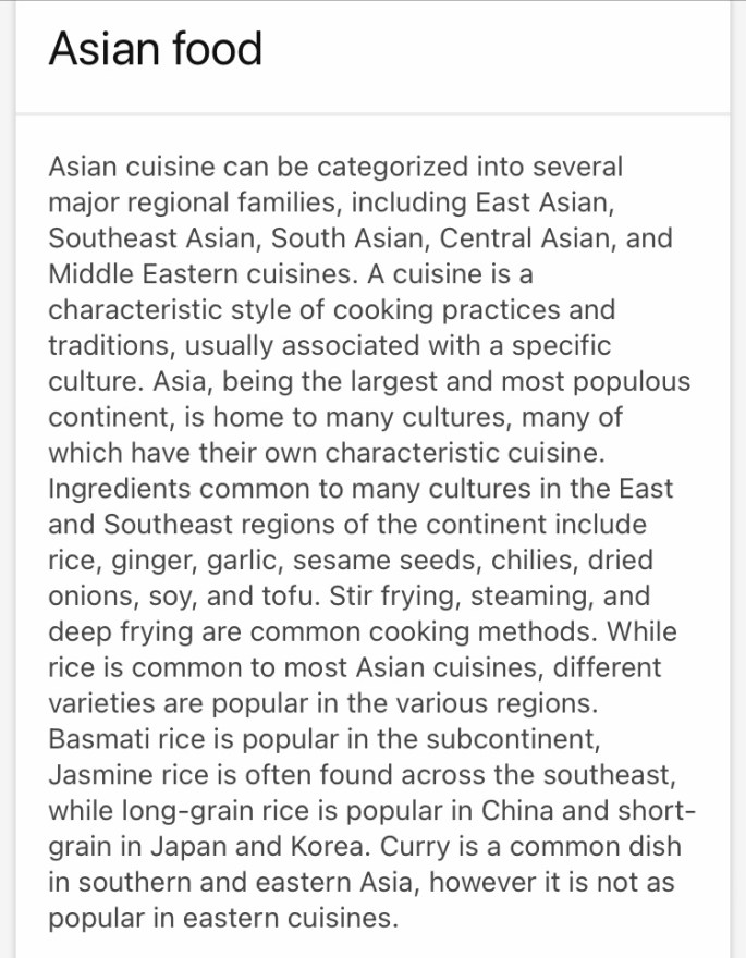 So let’s define Asian food. Nope, you can’t. Its not that easy. Found this definition on the internet.