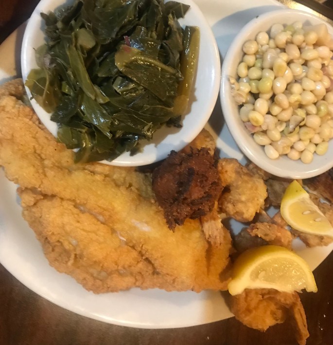 Adrienne’s selection was free-range venison with her selected sides being zipper peas and collards.