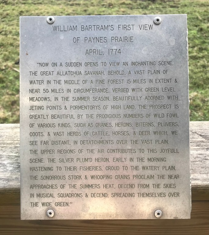 A trip to this part of Florida, usually includes a stop at another natural highlight – Paynes Prairie State Preserve. It has the distinction of being the first such preserve in Florida opening 1970.