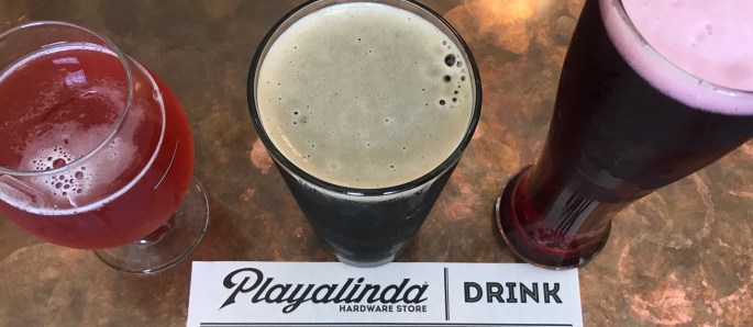 Our drink selections were very colorful. Left to right: Scrub Jay Lemon Wheat (mine), Playa Porter (Eric) and Blueberry Lemonade beer (Adrienne).