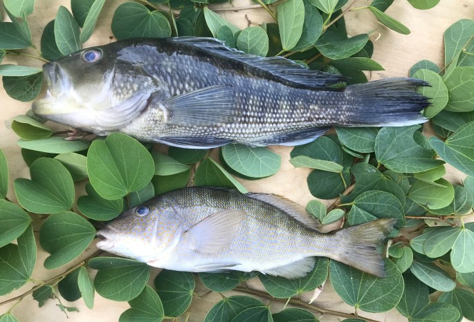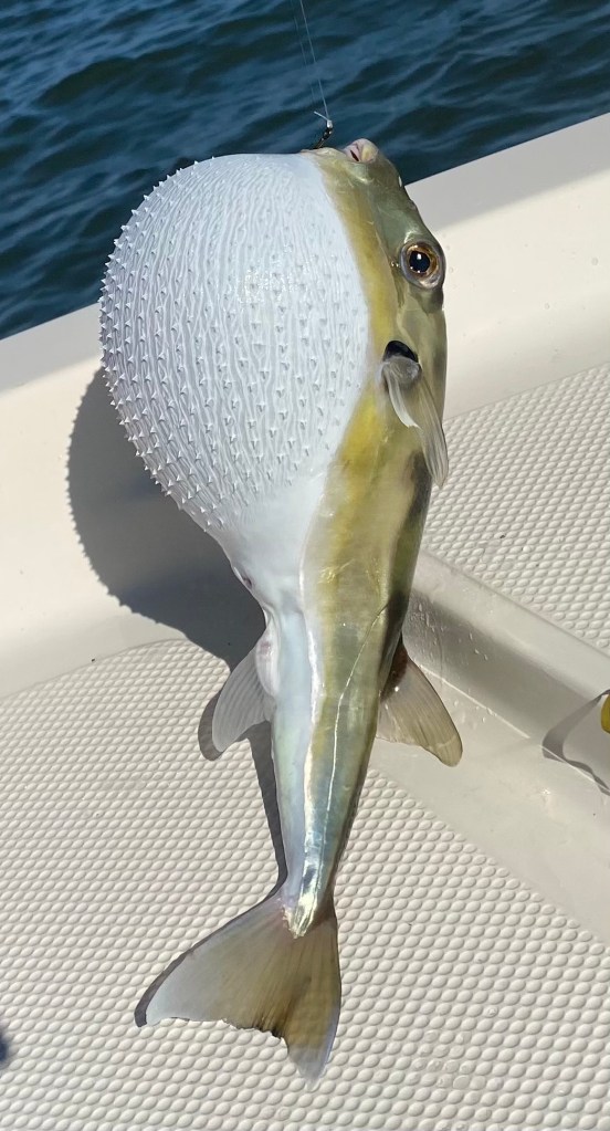 Eric and I were able to extend our stay for one more day. This enabled us to (1) have one more meal at Seafood Sellers and (2) catch a few more fish – black sea bass (top) and a grunt.