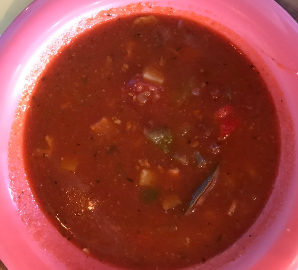 He started with a bowl of conch chowder before the fish & chips arrived.