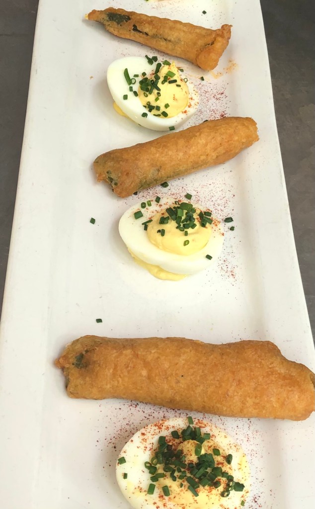 A bavarian pretzel, deviled eggs and fried jalapenos kept us going.
