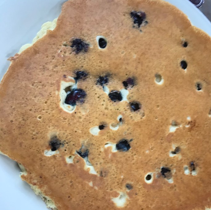 Eric was a copycat and ordered the pancakes with blueberries. He pretended to eat healthy by getting granola w/fruit and yogurt.