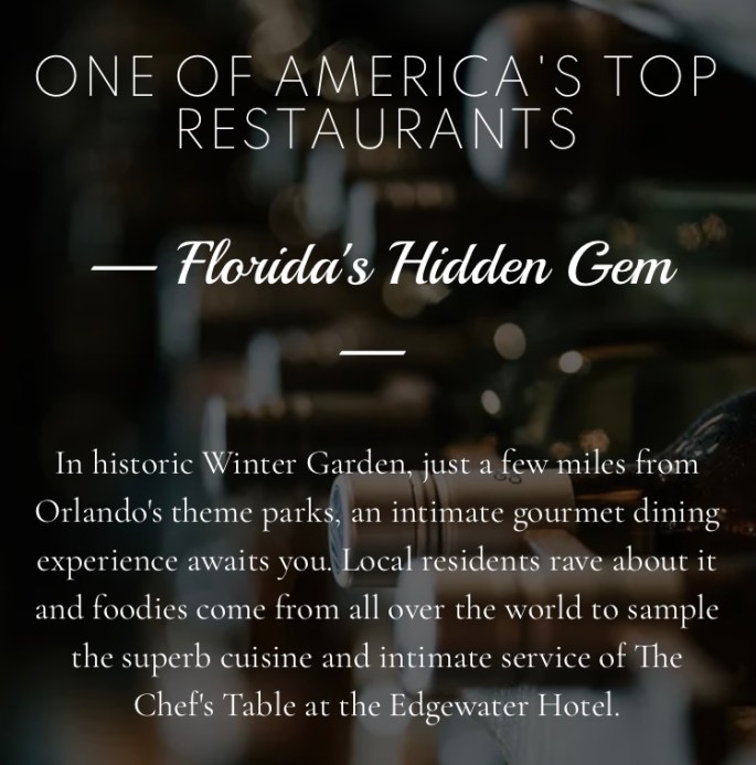 First Sunday we texted a popular Winter Garden restaurant located in their historic downtown to see if we could get a table for 2 before noon at The Chef’s Table. Got it!