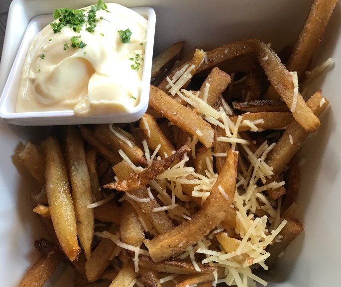 We started with two small plates for sharing: duck fat fries and smoked fish dip (of course) 🙂
