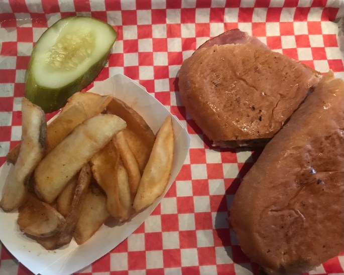 So I had an awesome and authentic pressed Cuban sandwich in Miami earlier this summer. The one I ordered here was no slouch. I would come back here in a heartbeat – just for this sandwich. Okay, it doesn’t look like much in my photo but it was mighty tasty. Oops – a repeat phrase, but it’s the truth so the phrase stays in the post.