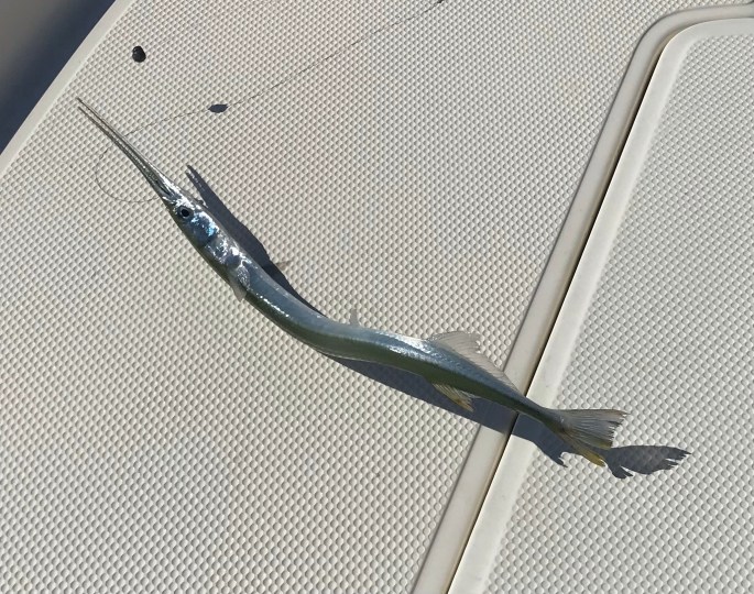 The next day of fishing starting out with catching some unusual species: a shark (24″) and needle fish (16″).